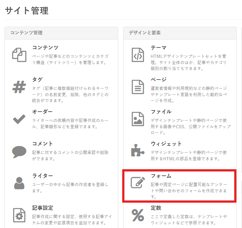 フォーム機能の詳細はこちらのFAQをご覧ください。